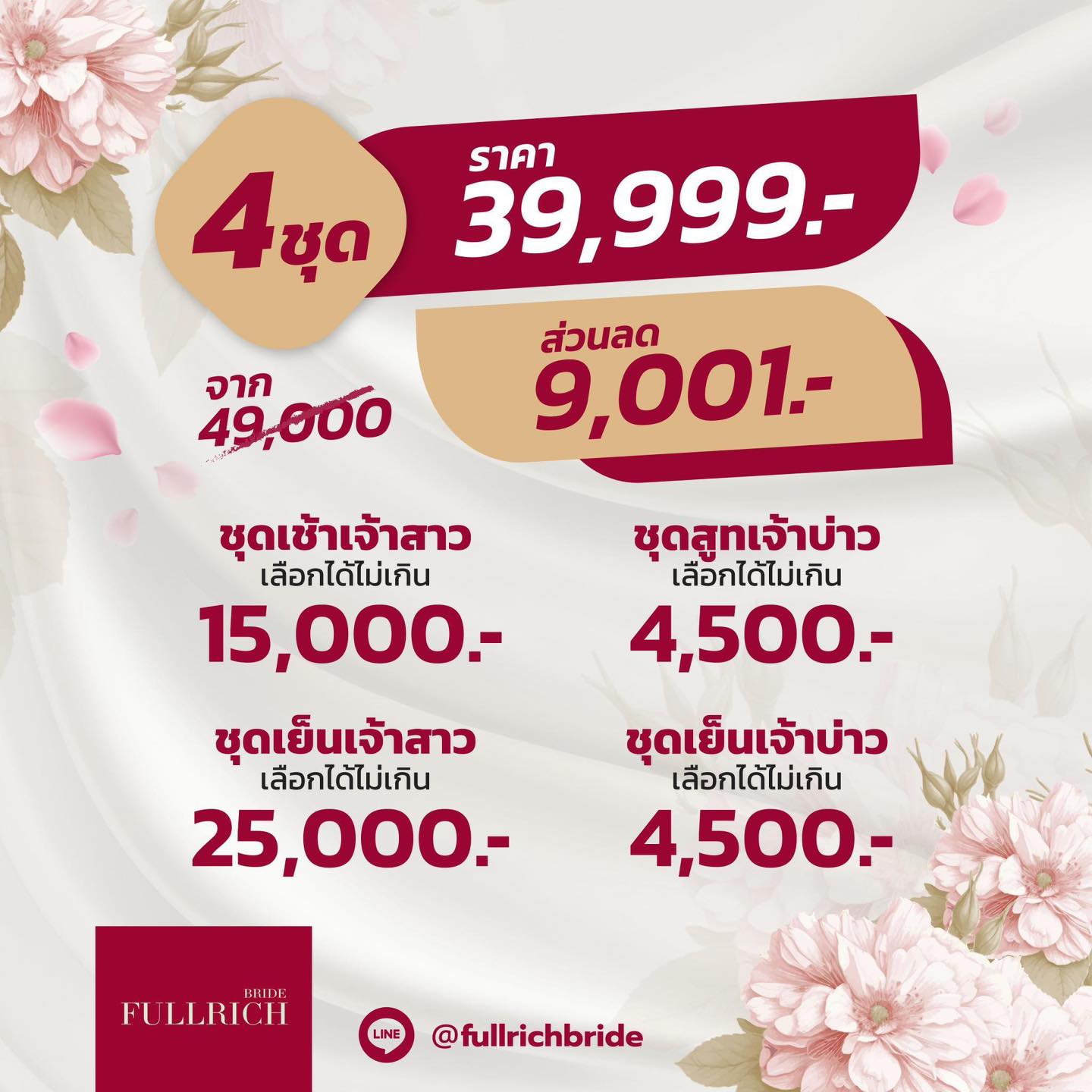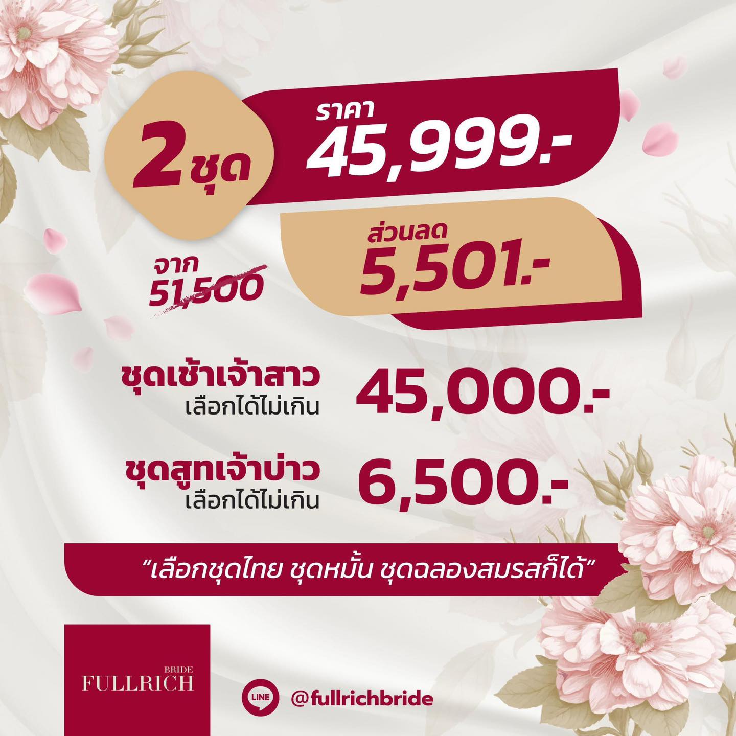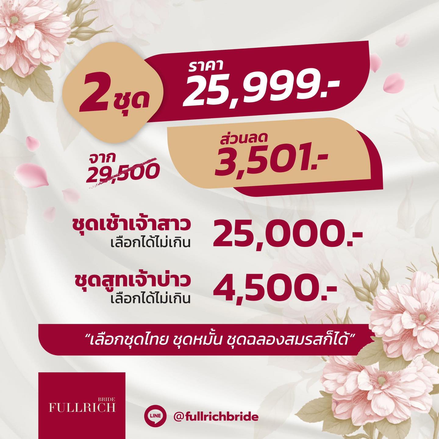 - •ชุดเจ้าสาว 1 ชุด ( เลือกชุดได้ราคาไม่เกิน 45,000 บาท)